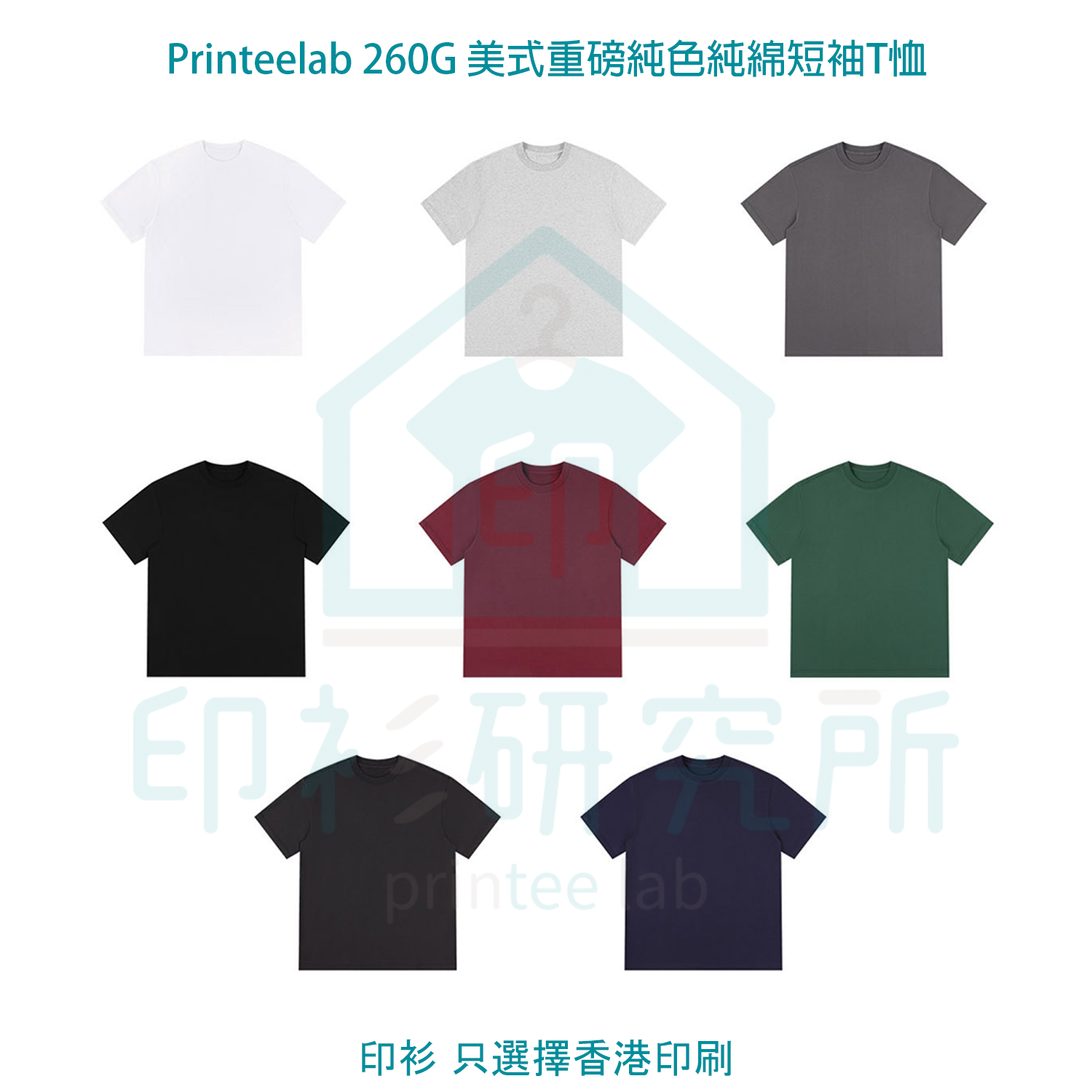 Printeelab 260G 美式重磅純色純綿短袖T恤 訂造價格28元起 #TGJ26-T2600