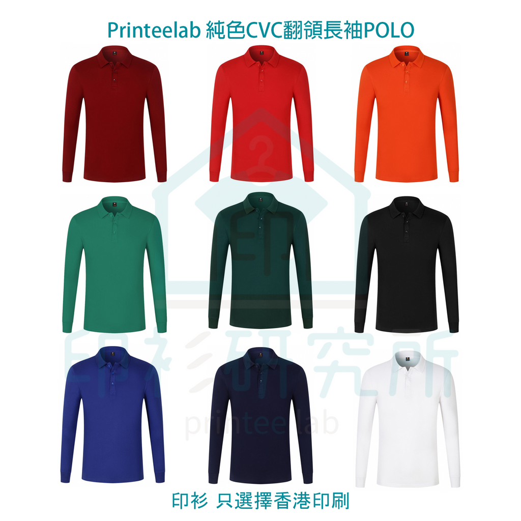 Printeelab 純色CVC翻領長袖POLO 訂造價格39元起 #L01-S660