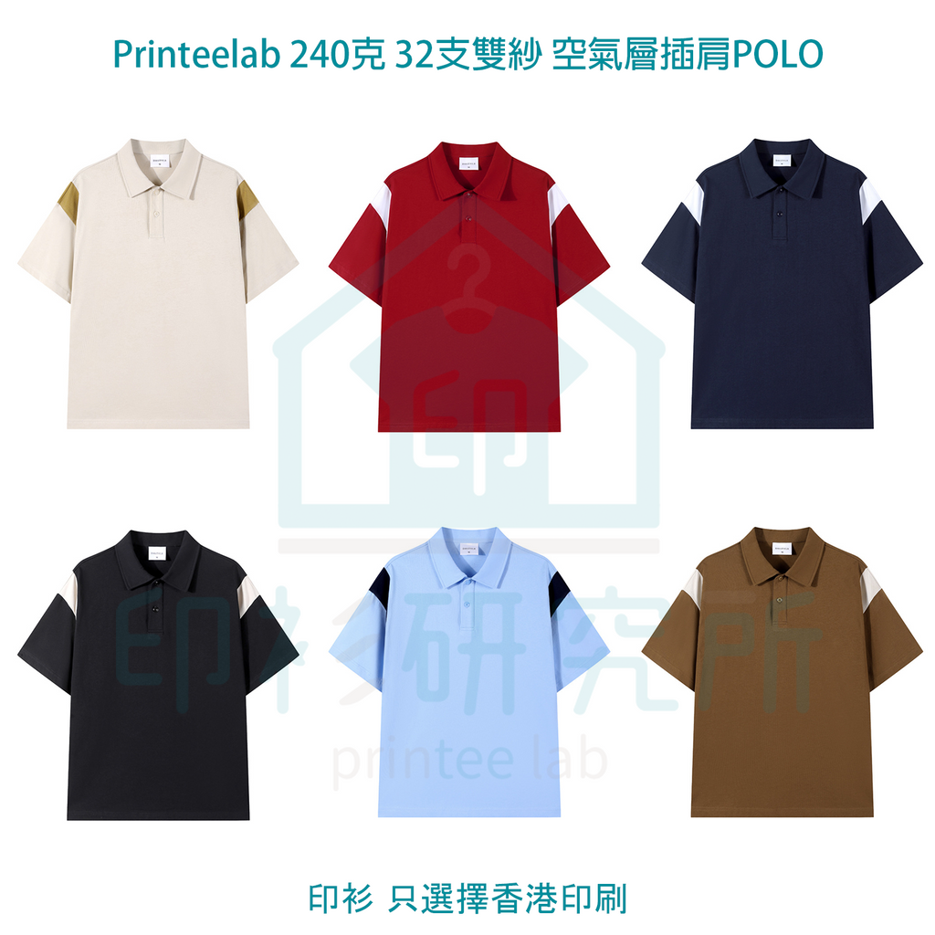 Printeelab 240克 32支雙紗 空氣層插肩POLO 訂造價格58元起 #GJ46-8888