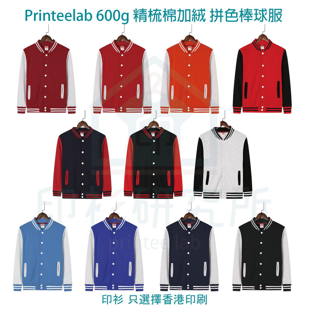 Printeelab AG500g 重磅毛圈薄款拼色長袖棒球外套 6色可選 NYJX003 訂造價格42元起
