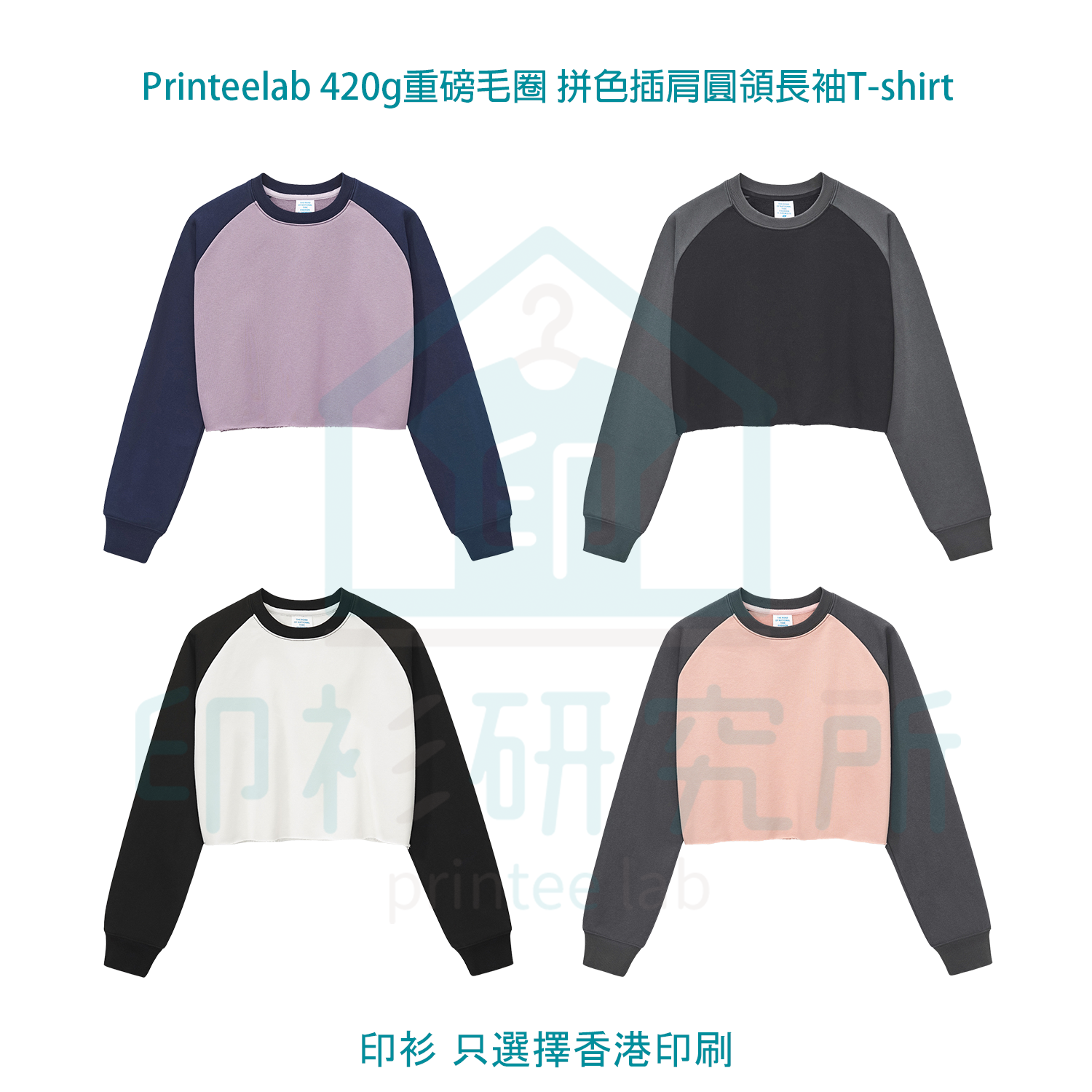 Printeelab 420g重磅毛圈 拼色插肩圓領長袖T-shirt 訂造價格55元起 #CITYLONG0032