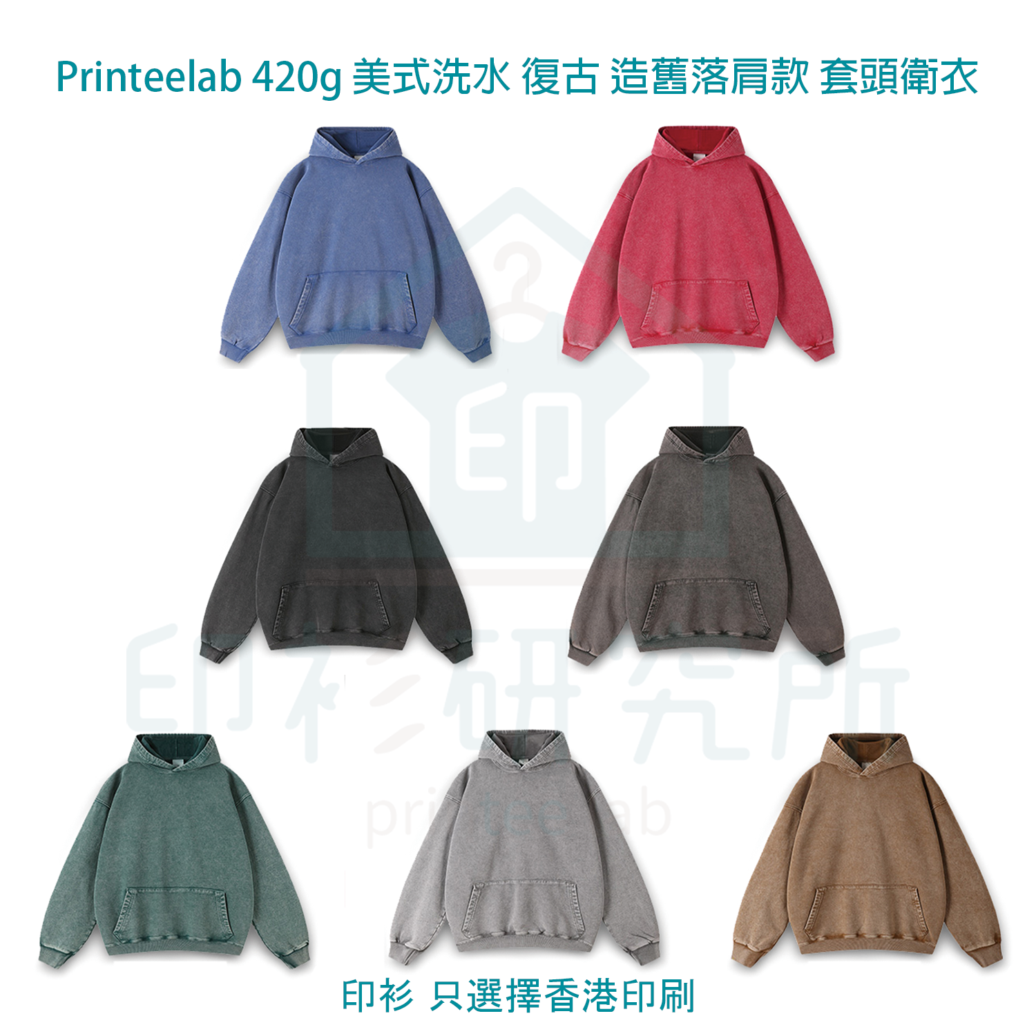 Printeelab 420g 美式洗水 復古 造舊落肩款 套頭衛衣 訂造價格118元起 #CITYLONG0024