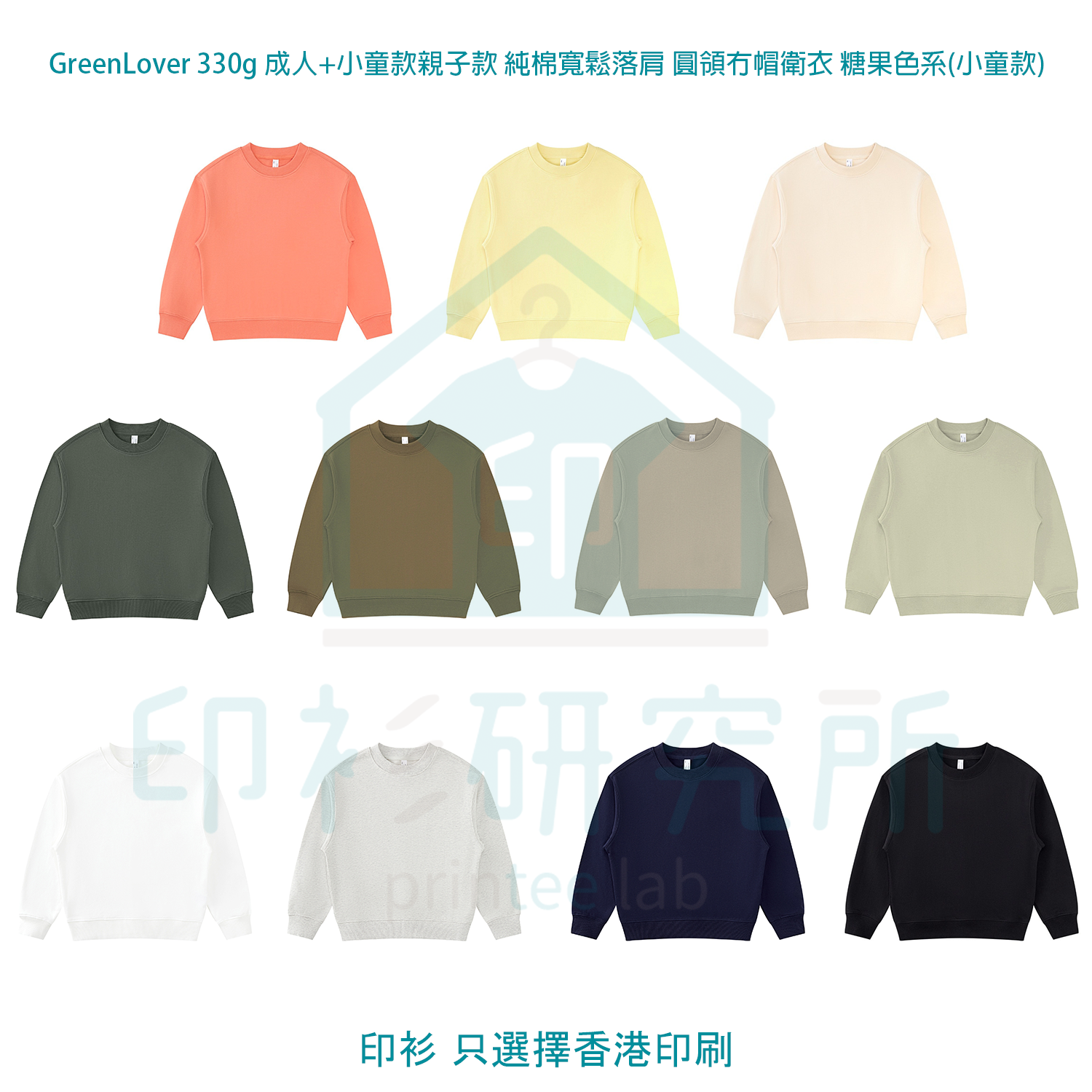 GreenLover 330g 成人+小童款親子款 純棉寬鬆落肩 圓領冇帽衛衣 糖果色系 訂造價格55元起 #LVLVLONG002 is backordered and will ship as soon as it is back in stock.