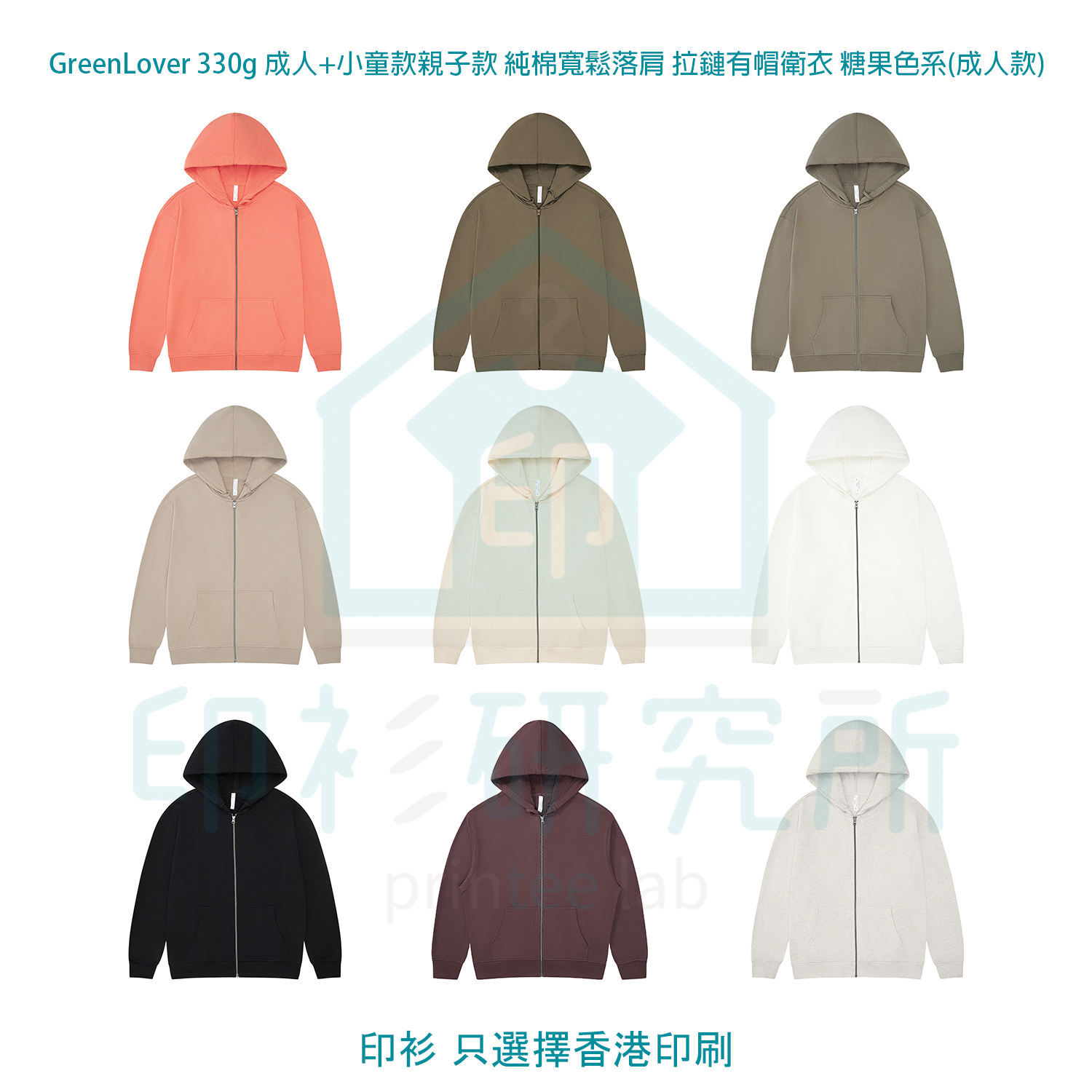 GreenLover 330g 成人+小童款親子款 純棉寬鬆落肩 拉鏈有帽衛衣 糖果色系 訂造價格77元起 #LVLVLONG004 is backordered and will ship as soon as it is back in stock.