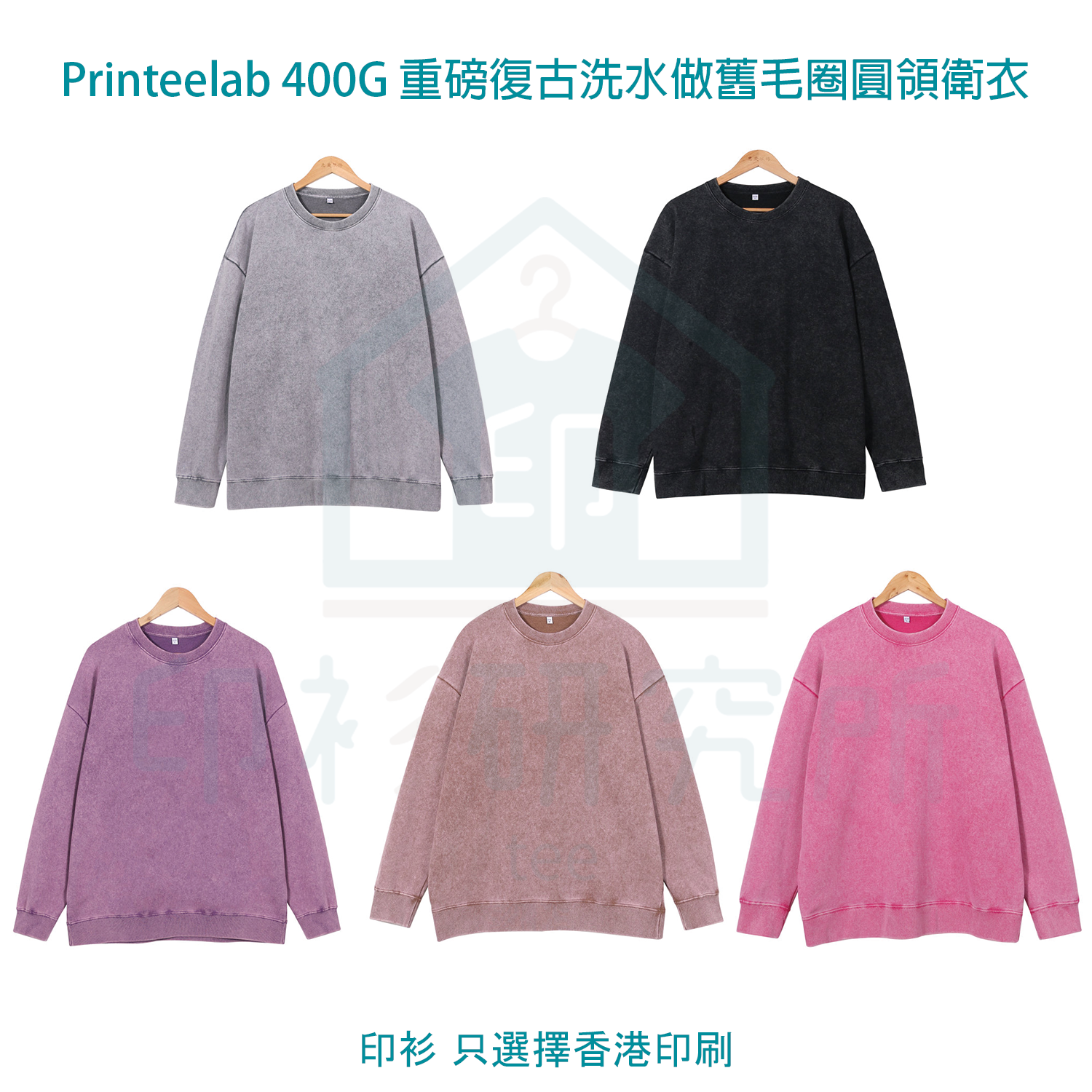 Printeelab 400G 重磅復古洗水做舊毛圈 圓領衛衣 訂造價格69元起 #CITYLONG0004 is backordered and will ship as soon as it is back in stock.