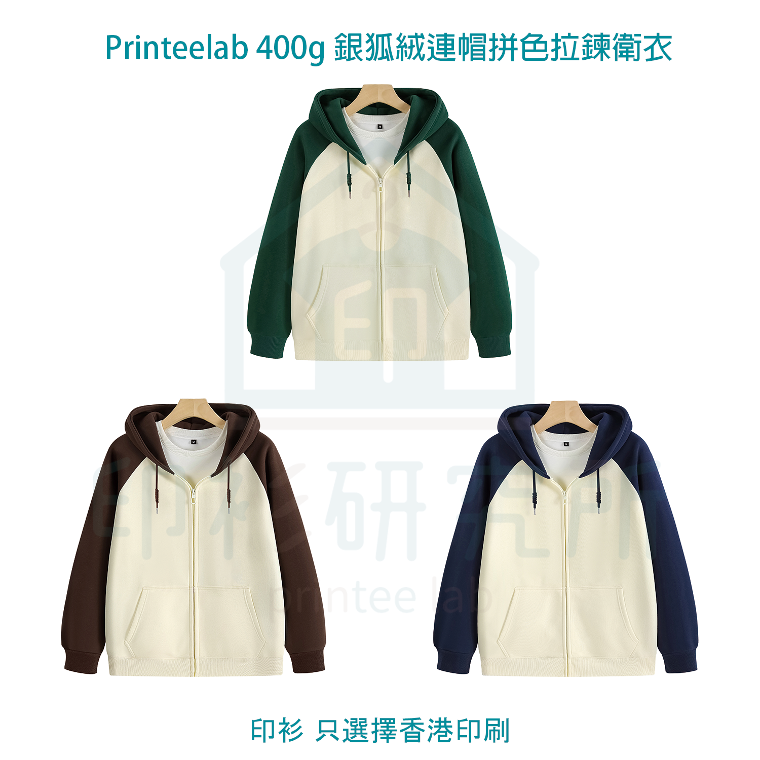Printeelab 400g 銀狐絨連帽拼色拉鍊衛衣 訂造價格80元起 #CITYLONG0021 is backordered and will ship as soon as it is back in stock.