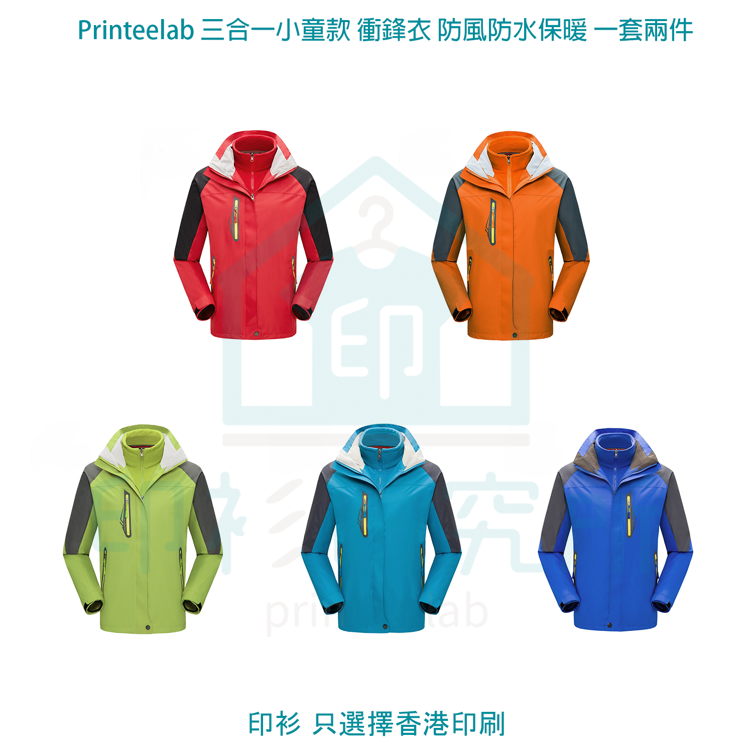 Printeelab 三合一小童款 衝鋒衣 防風防水保暖 一套兩件 訂造價格$138起 #CITYLONG0034 is backordered and will ship as soon as it is back in stock.